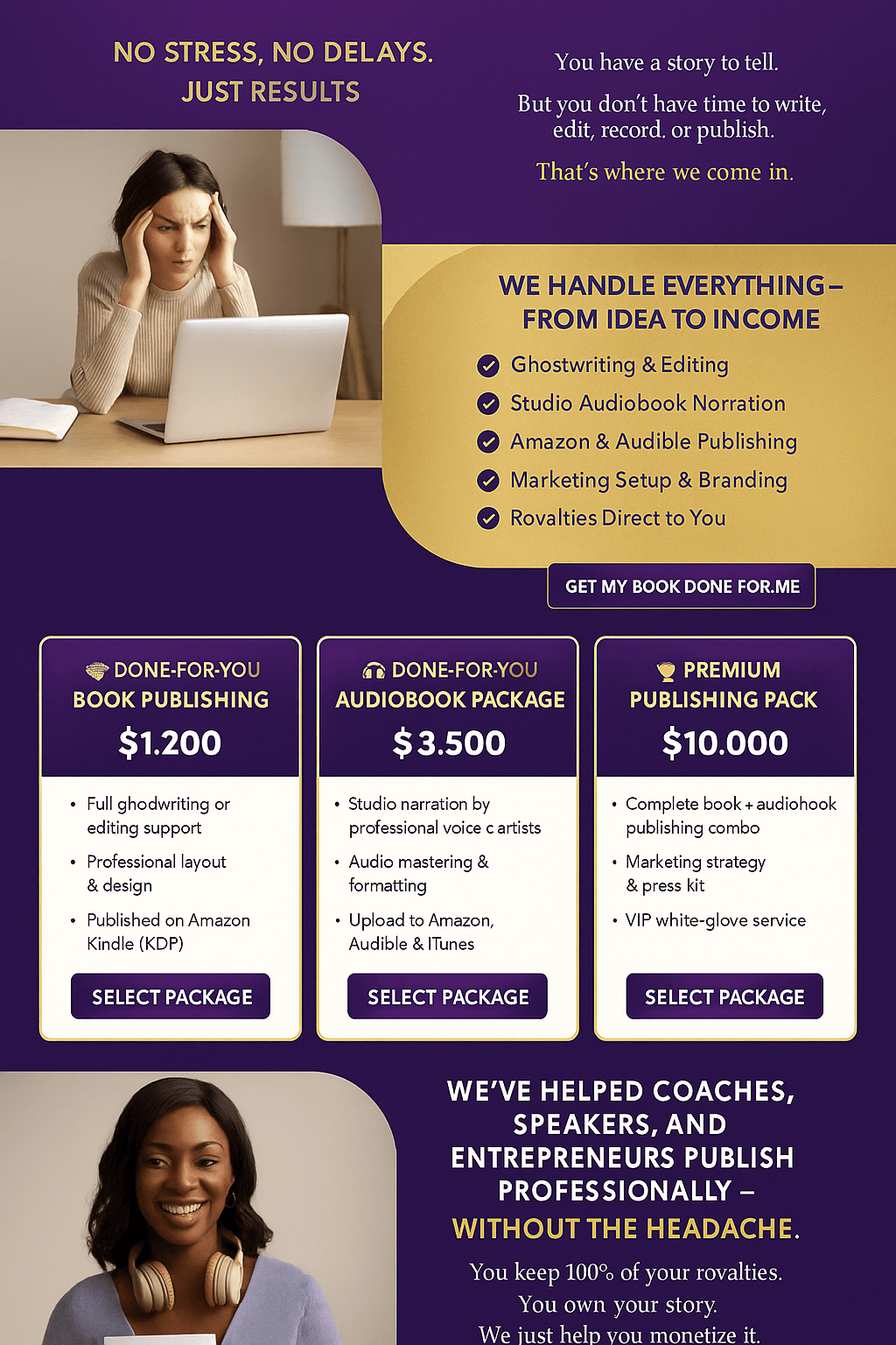 - Elite Done-For-You Publishing Expansion Package Sit back while we build, scale, and automate your entire book and audiobook empire.